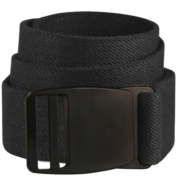 Cinturón casual con hebilla de plástico y correas livianas. Además estos cinturones se pueden dejar puesto en los puntos de control del aeropuerto.
