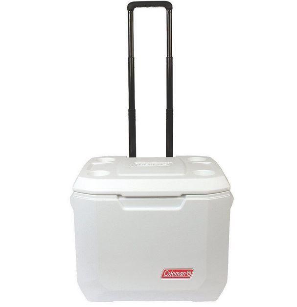 Mantenga sus alimentos y bebidas frías durante un tiempo prolongado en el agua, y haga que la diversión dure más tiempo, cuando entre con un Coleman 50 Qt. Coastal Xtreme Series Marine Wheeled Cooler. La tecnología Xtreme utiliza una tapa aislada y aislamiento adicional en las paredes para mantener sus artículos fríos por hasta 5 días. Lo suficientemente grande como para contener 84 latas, tendrá mucho espacio para refrescos para usted y sus compañeros de pesca. Construido para soportar las demandas adicionales de un entorno marino, el material UVGuard de este enfriador ofrece protección contra los rayos dañinos del sol, y su hardware de acero inoxidable resiste la oxidación. Ya sea que traigas el almuerzo para un viaje en bote de fin de semana o te dirijas a tu agujero de pesca favorito, las ruedas de alta resistencia y el largo mango telescópico hacen que sea fácil rodar por el muelle o el sendero hacia el lago. Las manijas moldeadas adicionales hacen que sea más fácil levantar y enfriar su refrigerador del bote o en un banco de picnic. Una vez que llegue, la tapa Have-A-Seat asegurará que siempre tenga un lugar para sentarse y relajarse, y los portavasos moldeados en la tapa mantendrán su bebida fría cerca mientras disfruta del día. Cuando termina la diversión, las toallitas superiores EZ-Clean limpian, y el drenaje resistente a las fugas hace que sea fácil vaciar el exceso de agua, por lo que está listo para su próxima aventura divertida en el agua.