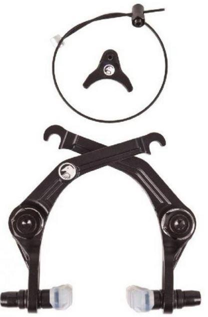 El freno característico de Drew Bezanson de The Shadow Conspiracy. El freno Sano está hecho de aluminio 6061 mecanizado por CNC y cuenta con resortes de perfil bajo y ajustadores para un espacio adicional para la cadena. Estos frenos vienen completos con pastillas de freno transparentes, colgador de cable de aluminio 6061 y cable de acero trenzado.