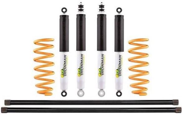 Los kits de suspensión Ironman4X4 están diseñados para dar una solución completa a uno de los puntos cruciales en un vehículo Todo Terreno, la suspensión y la amortiguación. Todos los kits dan un promedio de 2″ de Lift y aumentan el recorrido de suspensiones Para el caso de la scorpio es de 45mm. El Kit TC incluye: